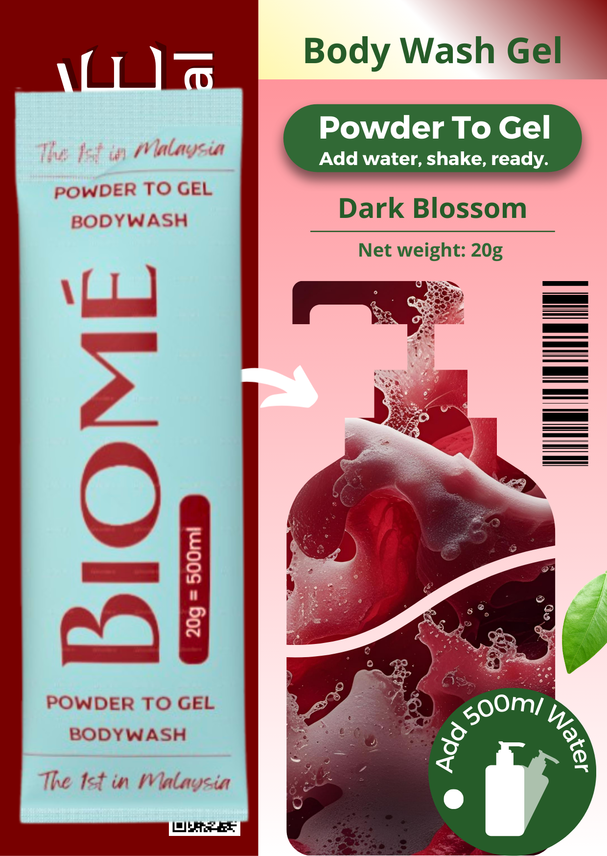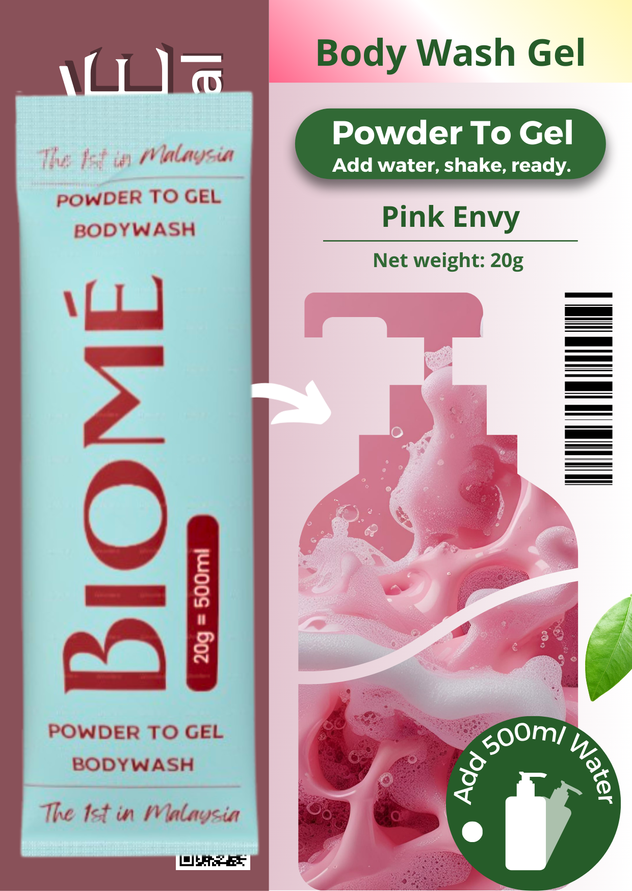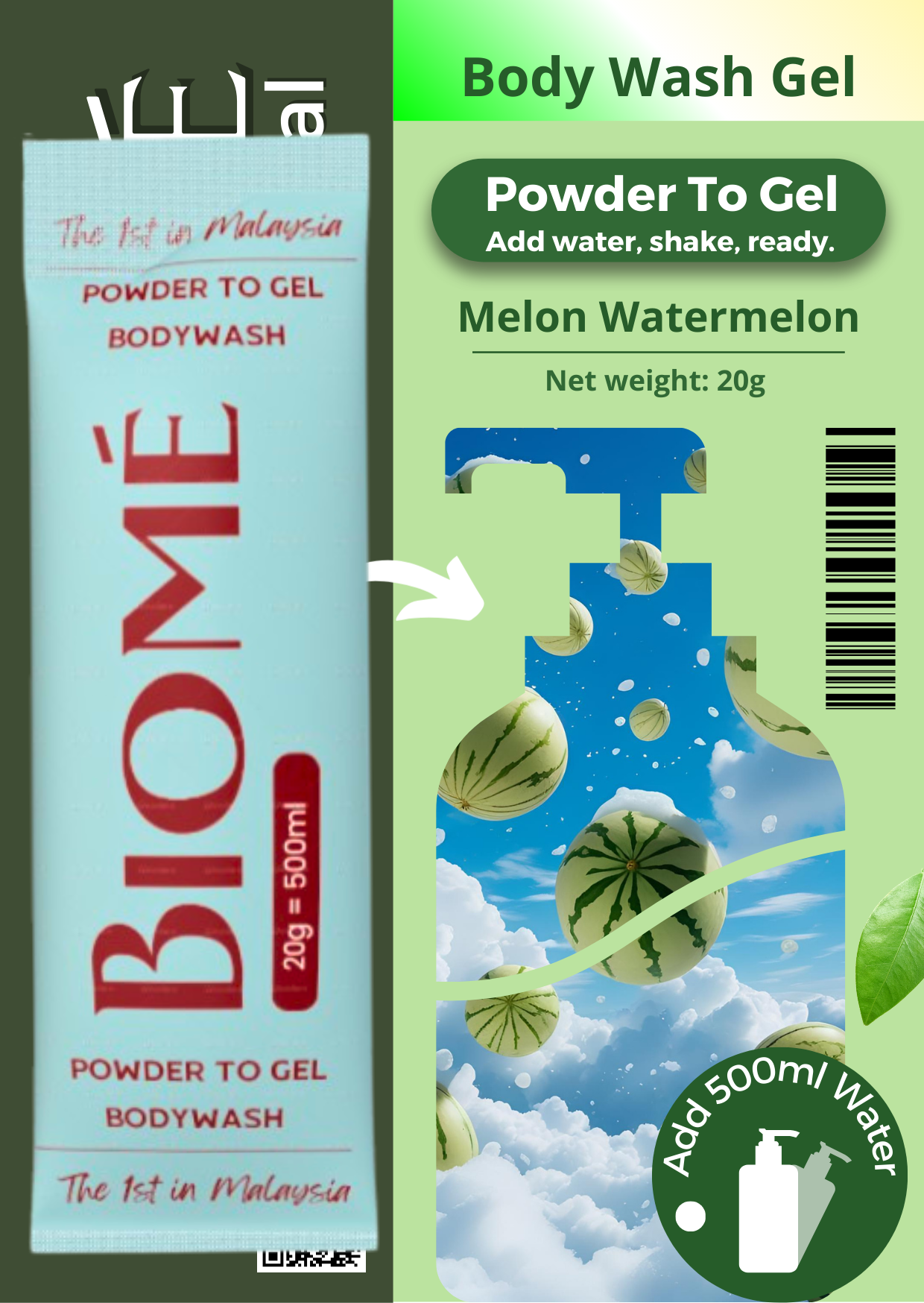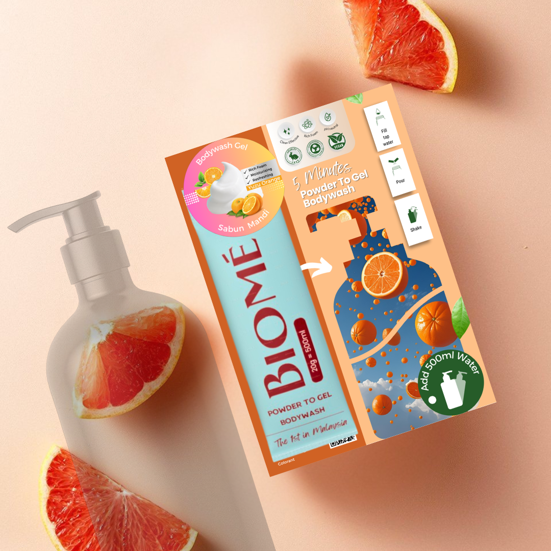 BIOME Powder-to-Gel Bodywash Soap 20g – 500ML – Sabun Mandian | Biodegradable • Skin-Friendly