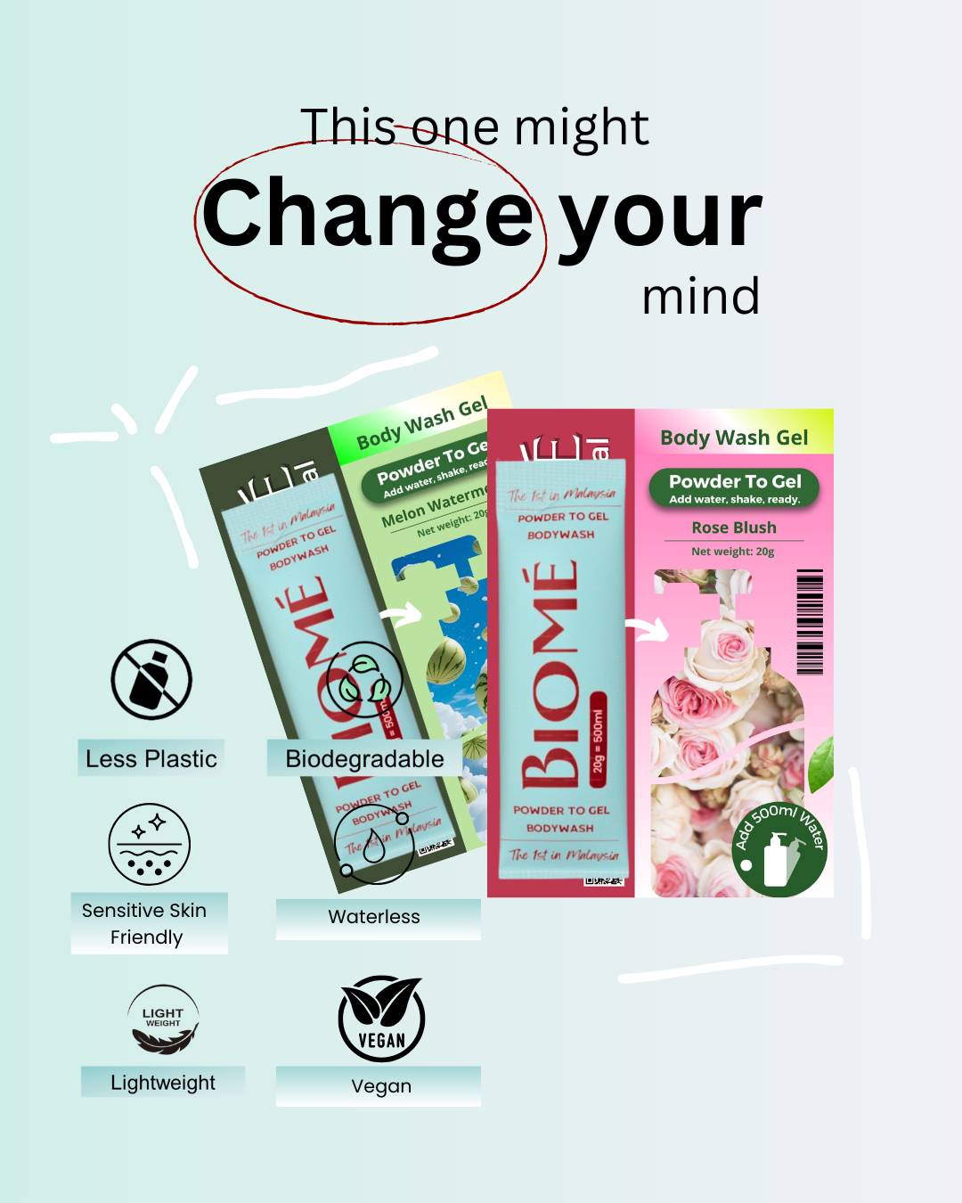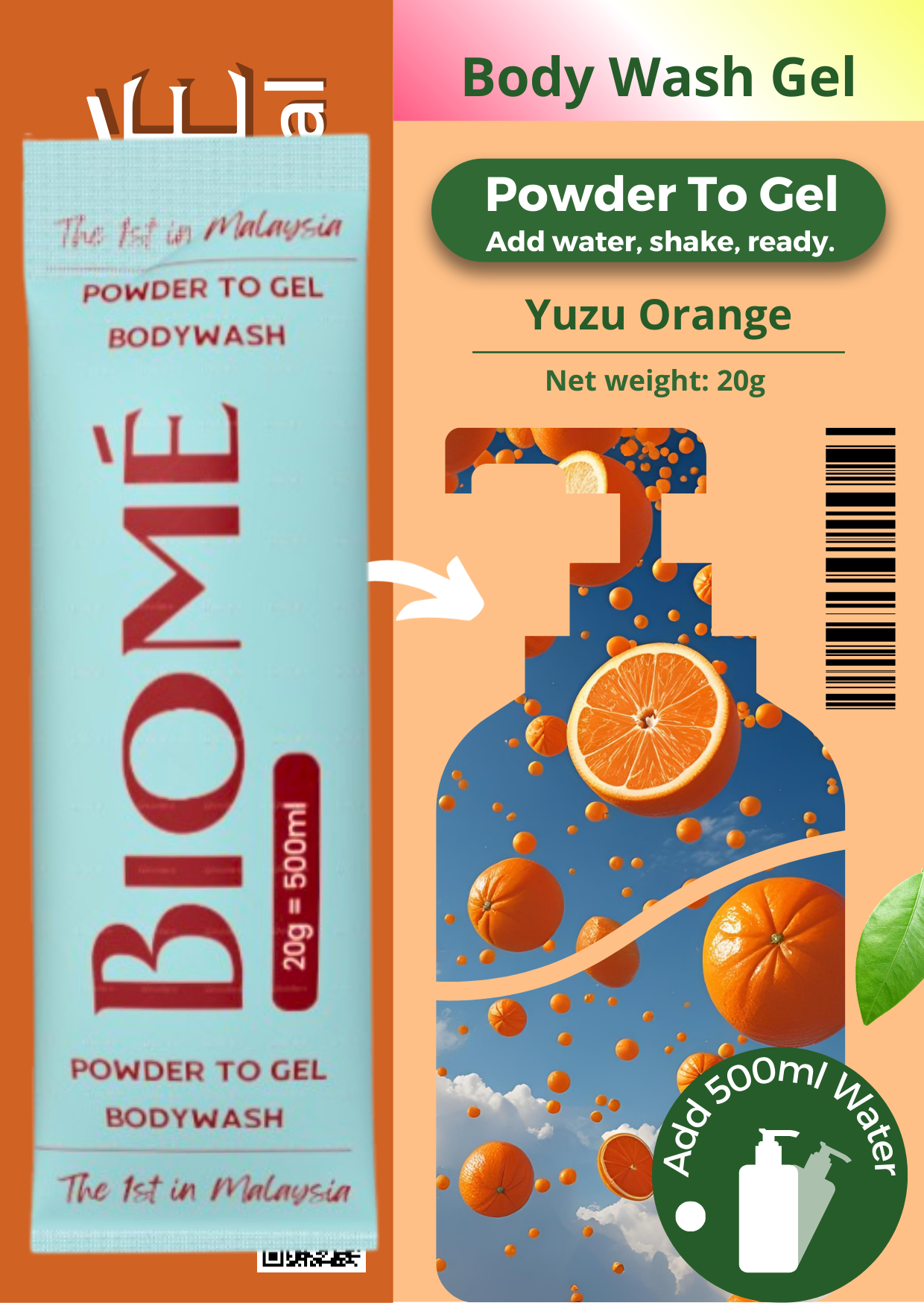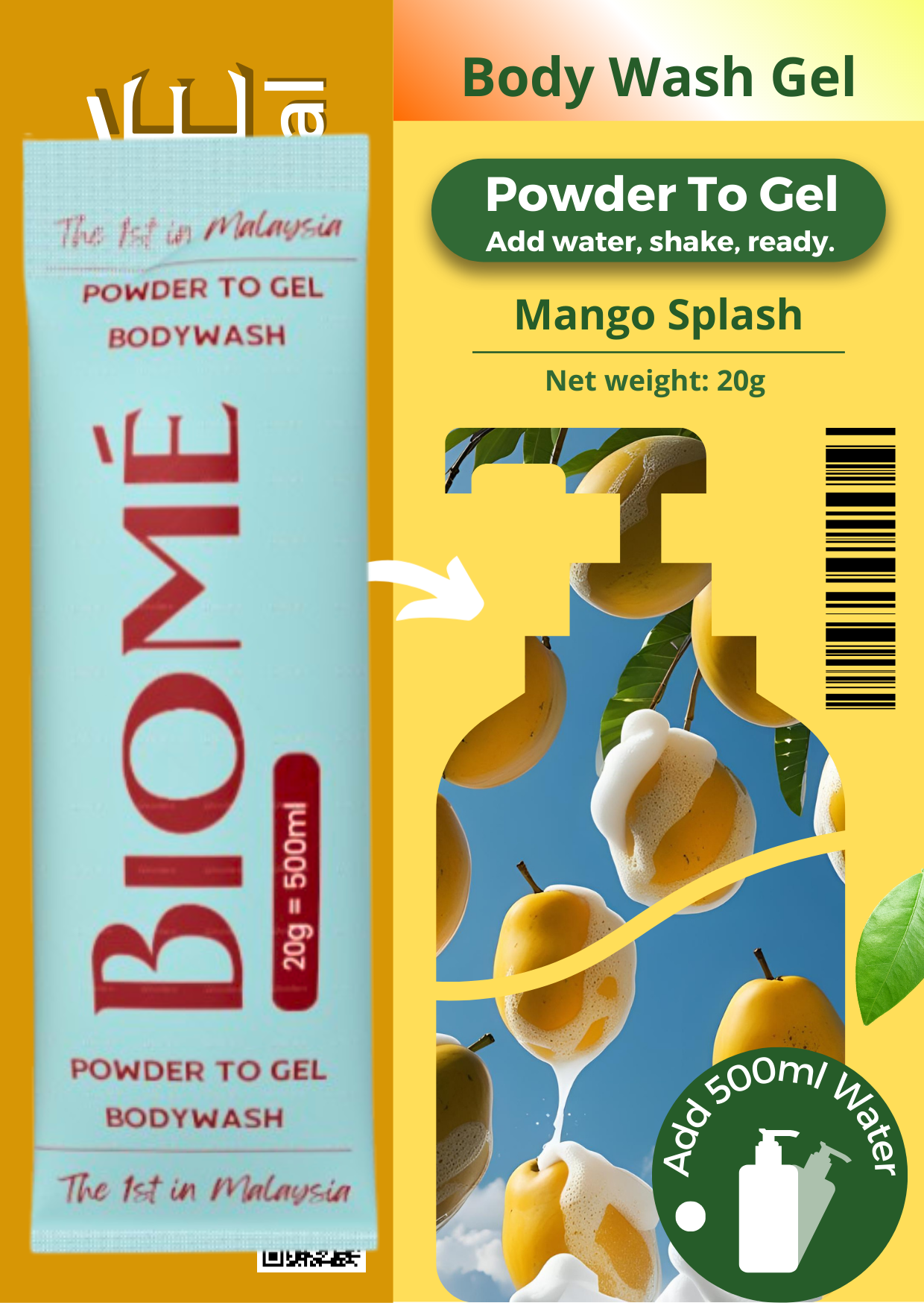 BIOME Powder-to-Gel Bodywash Soap 20g – 500ML – Sabun Mandian | Biodegradable • Skin-Friendly